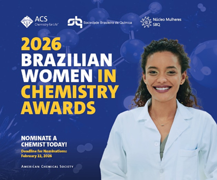 A American Chemical Society e a Sociedade Brasileira de Química abriram as inscrições para a nona edição do Prêmio Mulheres Brasileiras em Química. As duas sociedades buscam reconhecer, desde 2018, os feitos de mulheres cientistas com carreiras de destaque na comunidade científica global e que atuam em território brasileiro. Esta premiação objetiva apoiar e fortalecer a discussão sobre equidade de gênero na ciência brasileira, especialmente nas ciências químicas e correlatas. As candidatas têm até o dia 22 de fevereiro de 2026 (domingo) para se inscreverem em uma das três categorias da premiação. Para mais informações, candidatar-se ou indicar uma mulher cientista, acesse a página do Prêmio: Brazilian Women in Chemistry Awards - American Chemical Society