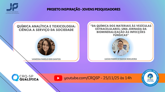 A inter e transdisciplinaridade são muito presentes desde as ciências básicas até as mais aplicadas. Essas interfaces ocorrem em todas as áreas da química e podem ser a porta de entrada para muitos estudantes e entusiastas em se aproximar (ou apaixonar) pela química. Com esse plano de fundo de união entre diferentes áreas que o Projeto Inspiração, uma parceria entre o Conselho Regional de Química - IV Região/SP (CRQ-SP) e o Comitê de Jovens Pesquisadores da Sociedade Brasileira de Química (JP-SBQ), apresenta a trajetória e pesquisas de jovens pesquisadores que possam impactar futuros profissionais da química. » Veja mais...