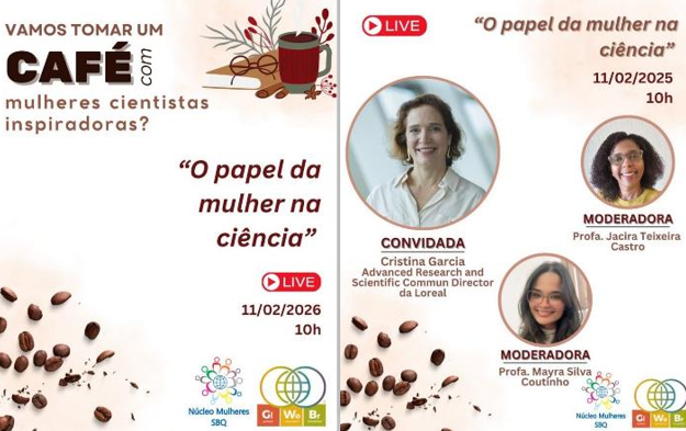 Como parte do Global Woman Breakfast (GWB), convidamos você para um café especial, que será transmitido ao vivo no canal do YouTube do Núcleo Mulheres SBQ (@nucleomulheressbq), no dia 11 de fevereiro de 2026, às 10 horas. » Veja mais...