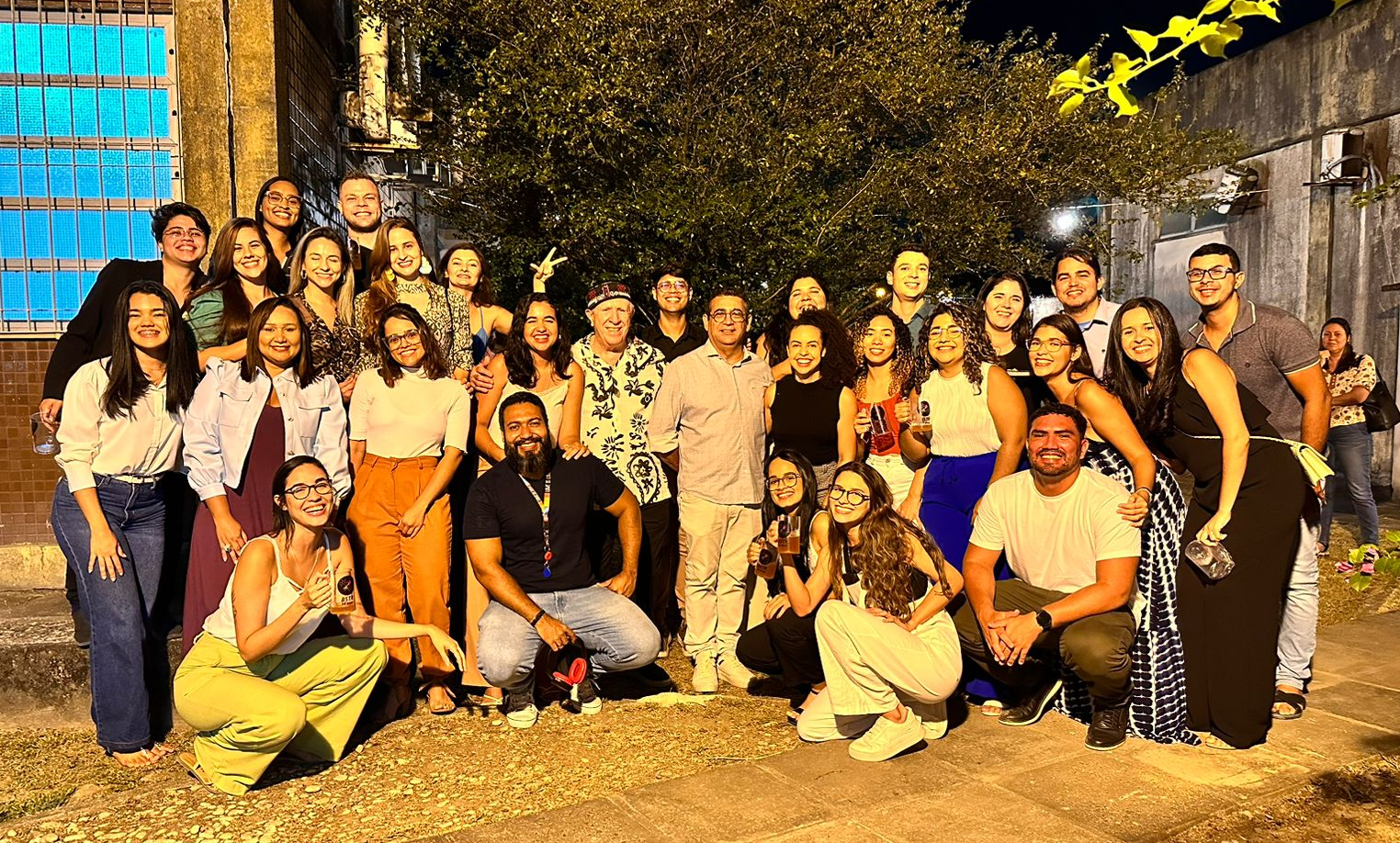 Prof. Severino Alves Júnior (no centro, de óculos) com seus alunos: Atualmente o grupo trabalha em um projeto para desenvolver MOFs para regeneração óssea, utilizando células tronco