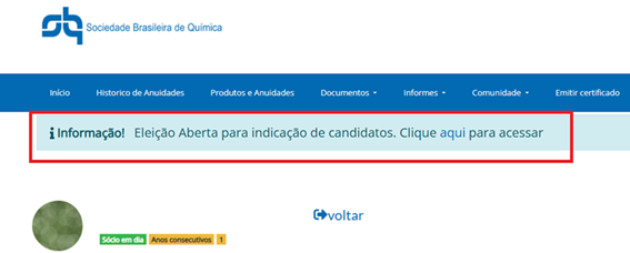 Para participar da Etapa 1 – indicação de nomes, utilize seu login e senha no painel de associado (https://sistema.sbq.org.br/pt/login).
