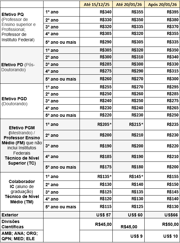 Essa tabela também pode ser acessada em: https://www.sbq.org.br/taxas-sbq-2026 /
